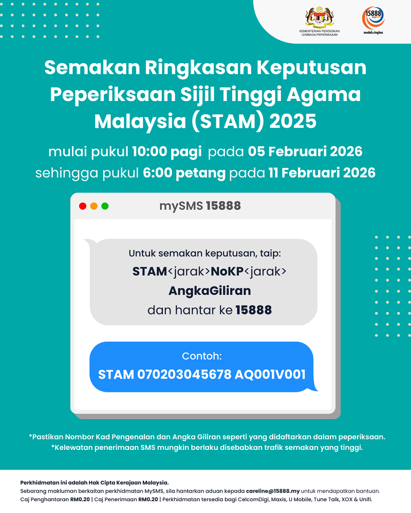 Semakan Keputusan STAM 2025 Secara Online Dan SMS